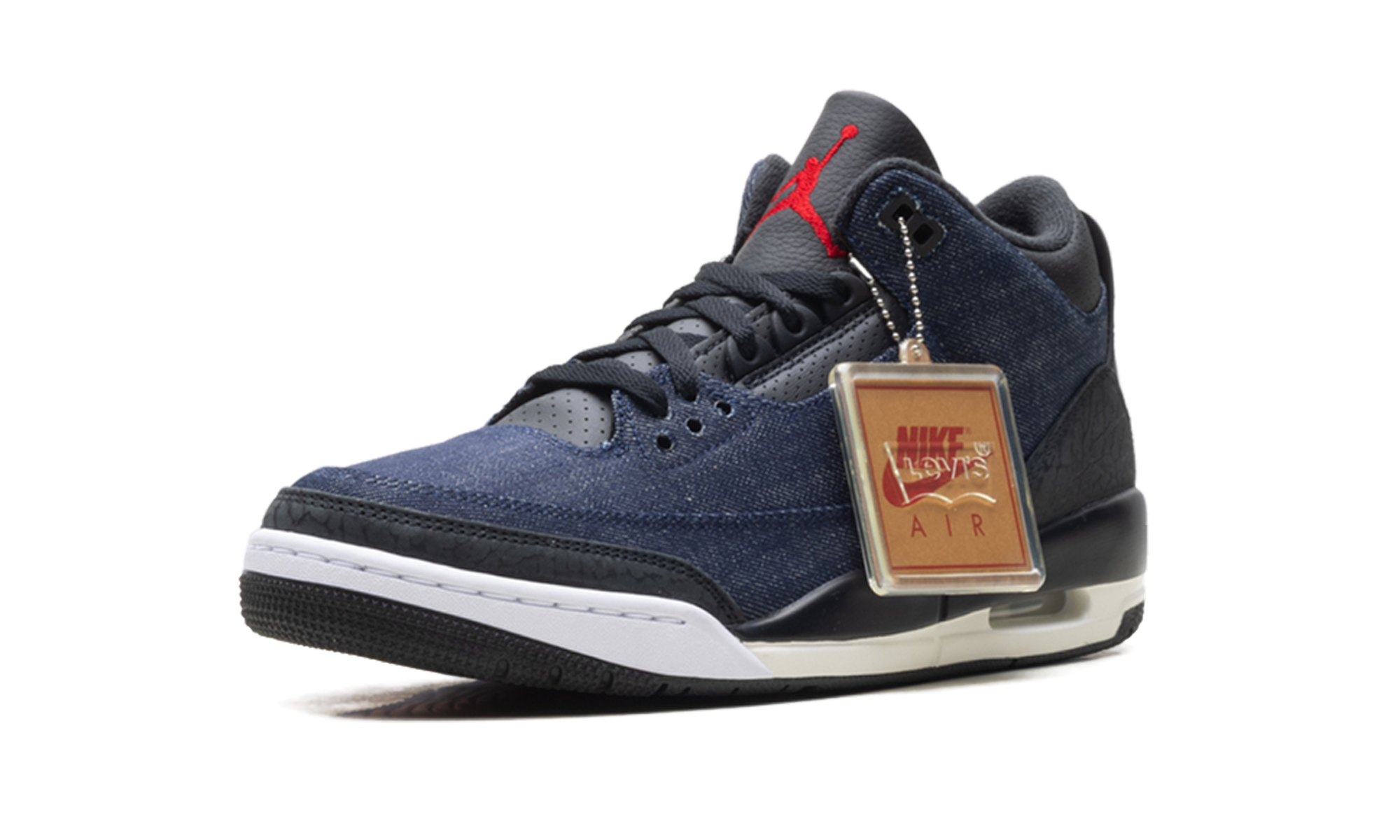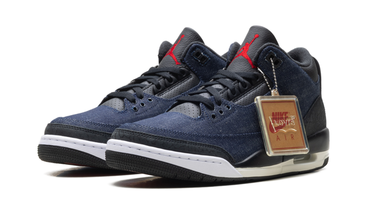 The Air Jordan 3 "Levis - Indigo" merges two American giants in a celebration of premium craftsmanship. Featuring a full-denim upper with the signature Levi’s "red tab," this pair reimagines the classic elephant print with distressed indigo textures. The tan leather tongue patch mimics the back of a pair of 501s, adding a rugged, artisanal touch to the 1988 silhouette. It is a sophisticated, lifestyle-oriented masterpiece that bridges the gap between legendary basketball heritage and classic American denim culture.