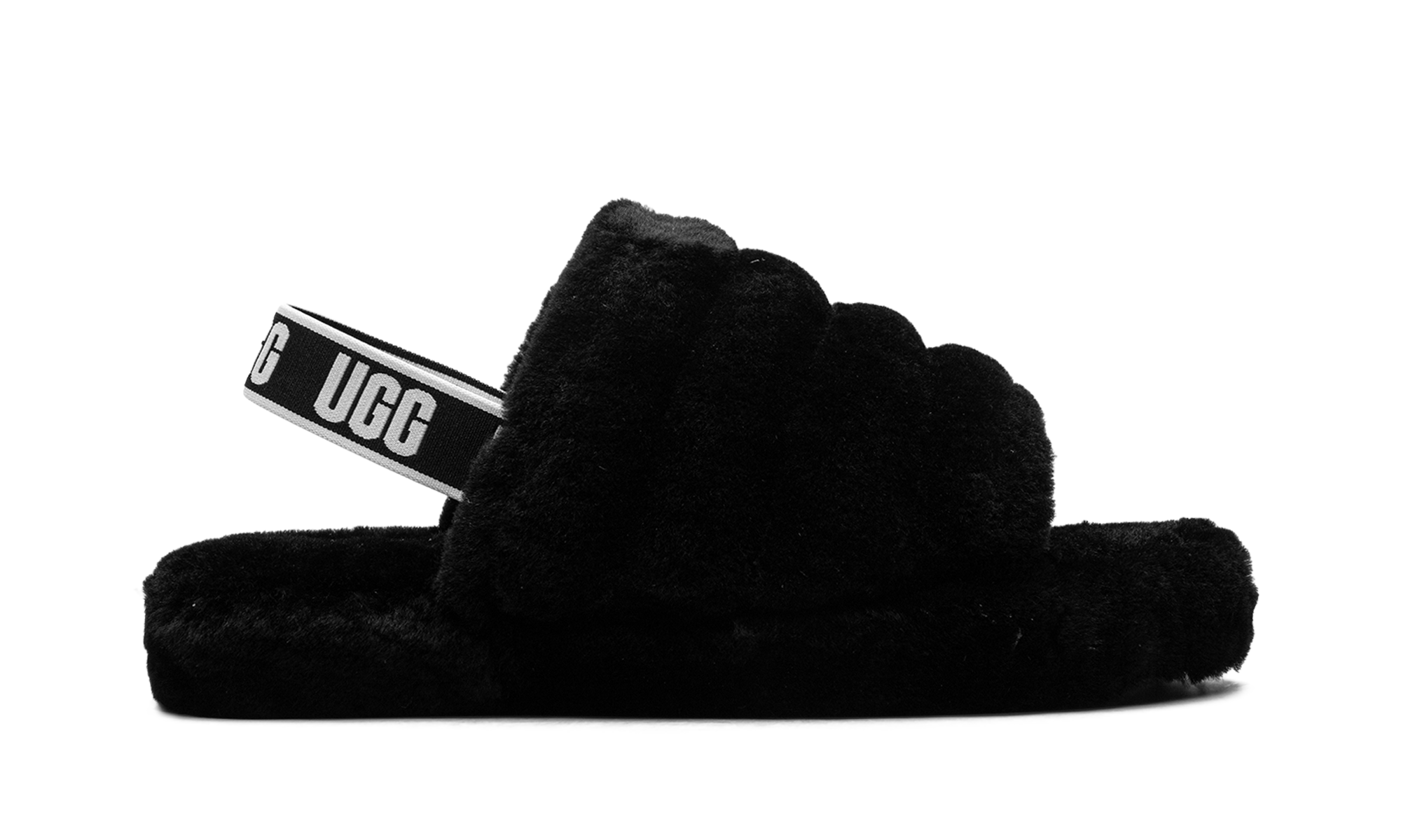 Get ready for the softest steps with the UGthtG Fluff Yeah Slide GS "Black", the versatile Cushion Cloud for Grade Schoolers! This iconic sandal-slipper hybrid is crafted with a genuine sheepskin upper and lining that locks in luxurious warmth. The easy slip-on style features a stretchy elastic heel strap, ensuring a secure fit for active feet. Finished with a light, cushioned platform outsole, these Fluff Yeah Slides bring cozy indoor comfort and playful outdoor style to any outfit.