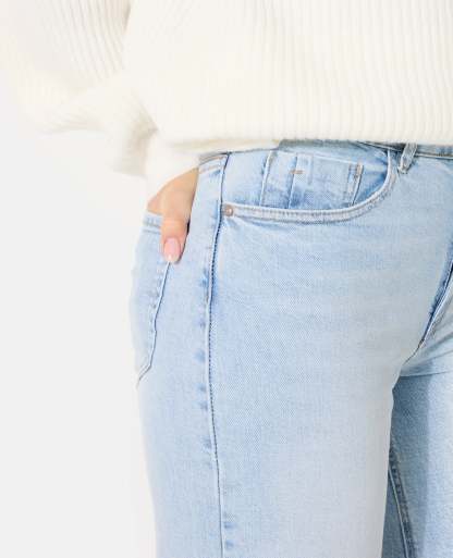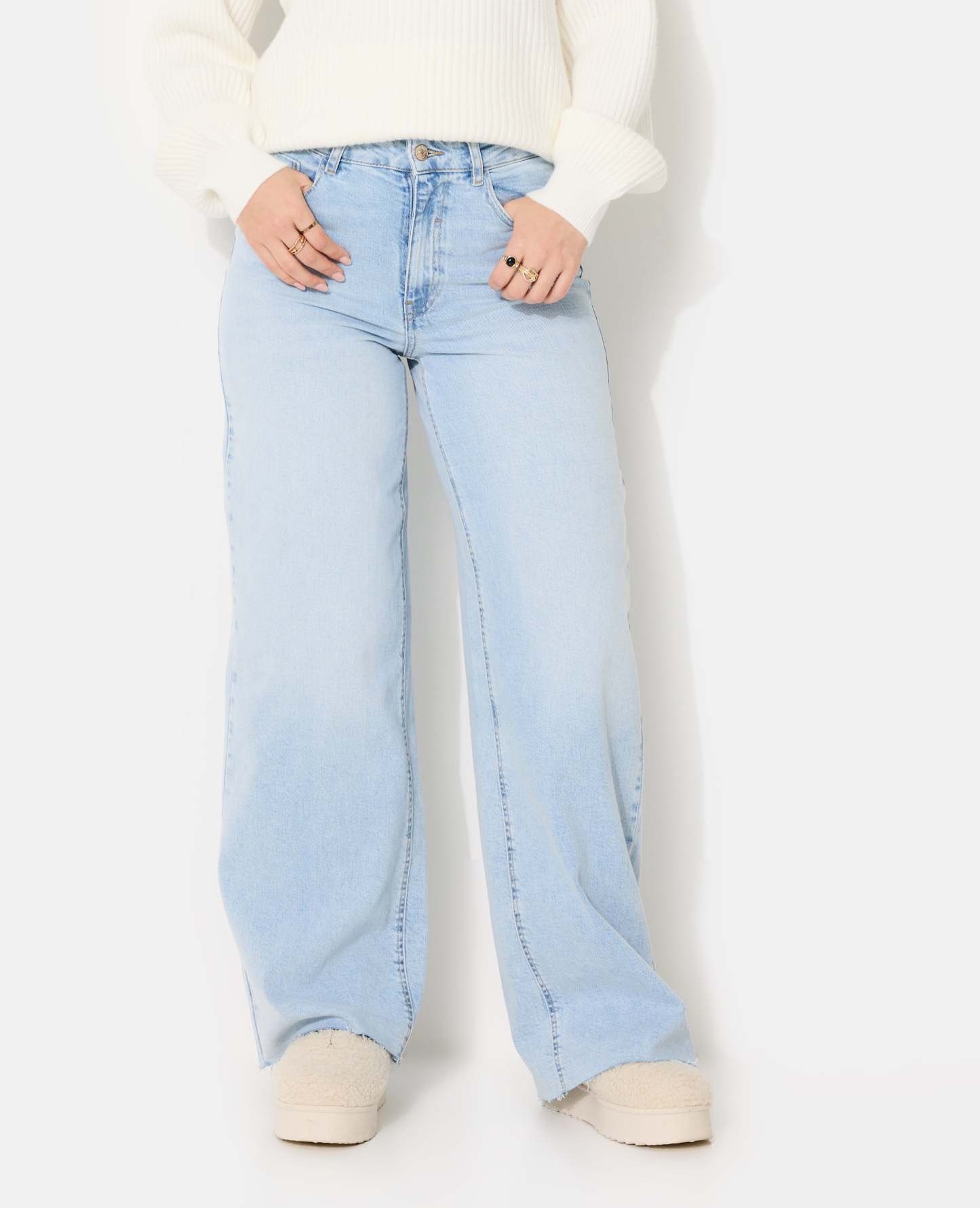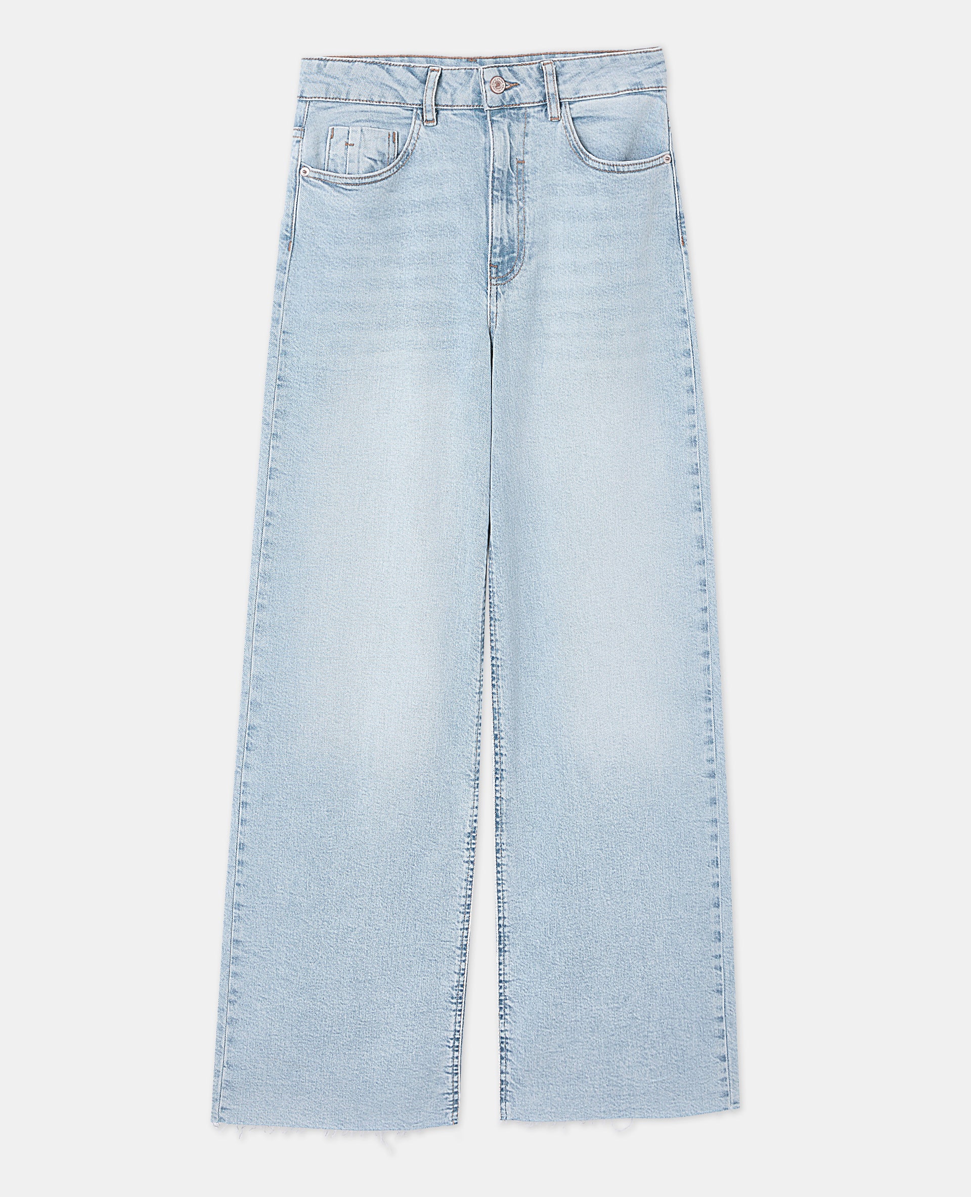 - Jean wide J71-1 bleu délavé avec coutures contrastées.