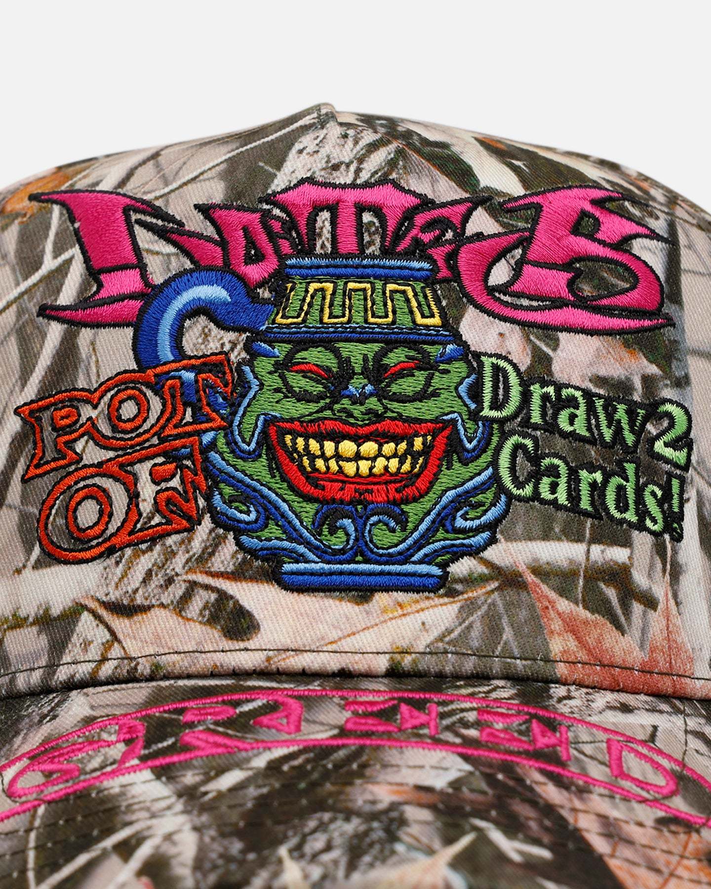 Loiter is bringing the vibes to your headwear collection with the Loiter X Yu-Gi-Oh! Pot Of Greed Camo Snapback Hat. A premium snapback closure with an all-over print. Finished with a structured high-profile crown for the perfect fit finisher. Cop yours today at Culture Kings.- Embroidered graphics- High-profile crown- Snapback closure- Pre-curved brim- Structured silhouette- All over print- Colour: Real Tree Camo- Style: LTYGO25158
