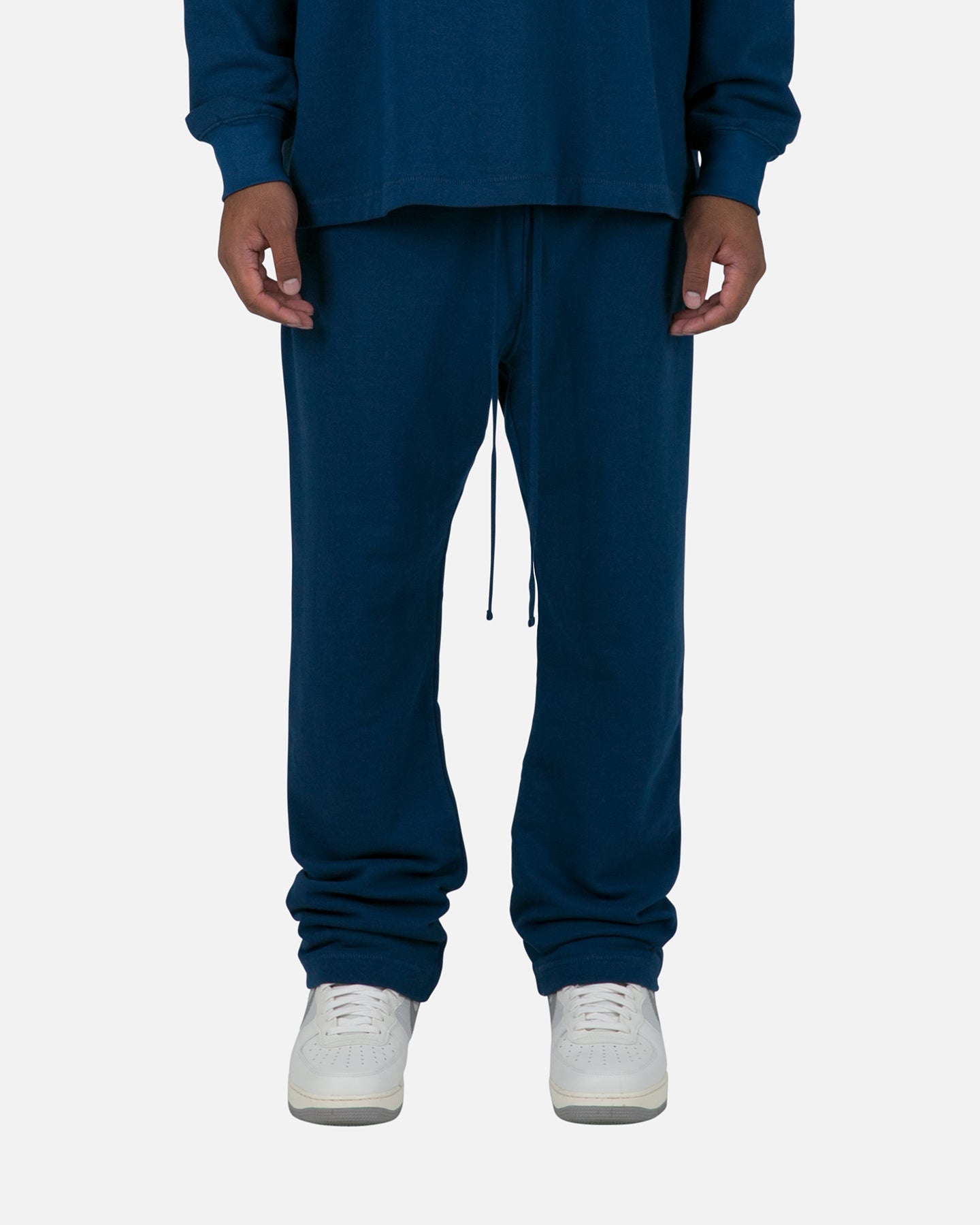 Cop the perfect merge of comfort and streetwear vibes with the Every Day Sweatpants from MNML. A staple of the game, these pants feature an elasticated waistband and adjustable drawstring for a customisable fit, while ribbed cuffs help to lock in the warmth on cooler days. Level up your look and get your hands on these today!- Elasticated waistband- Adjustable drawstring- Ribbed cuffs- Dual side pockets- Straight fit- Colour: Navy- Style: M2022-W634-NVY