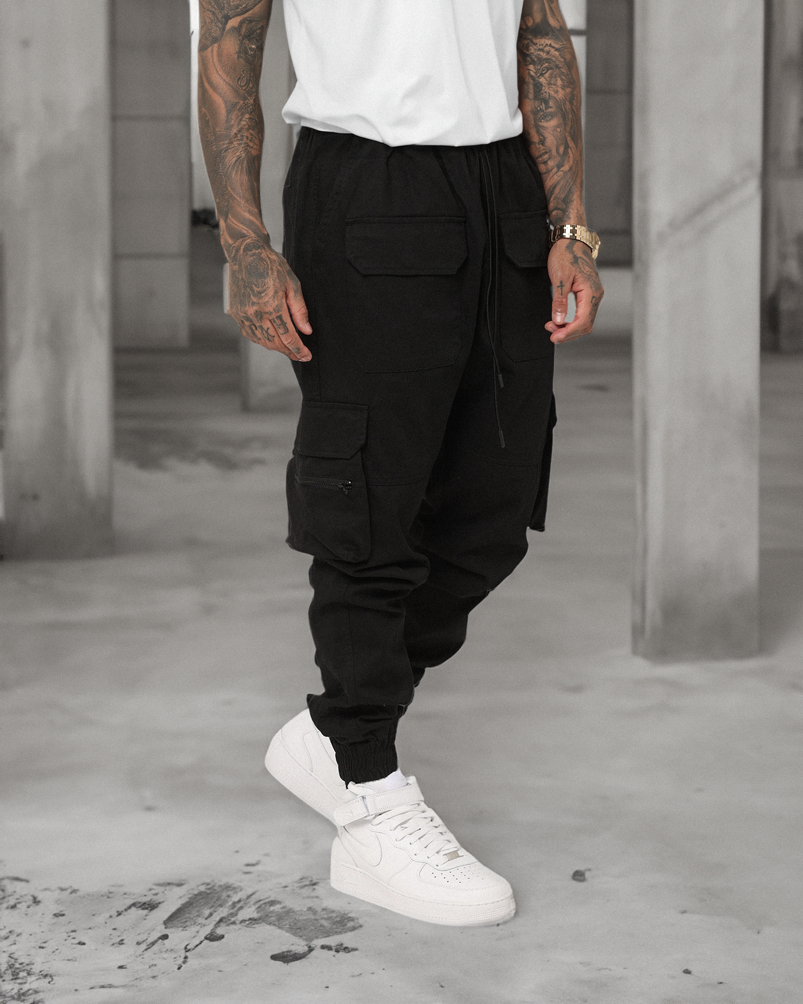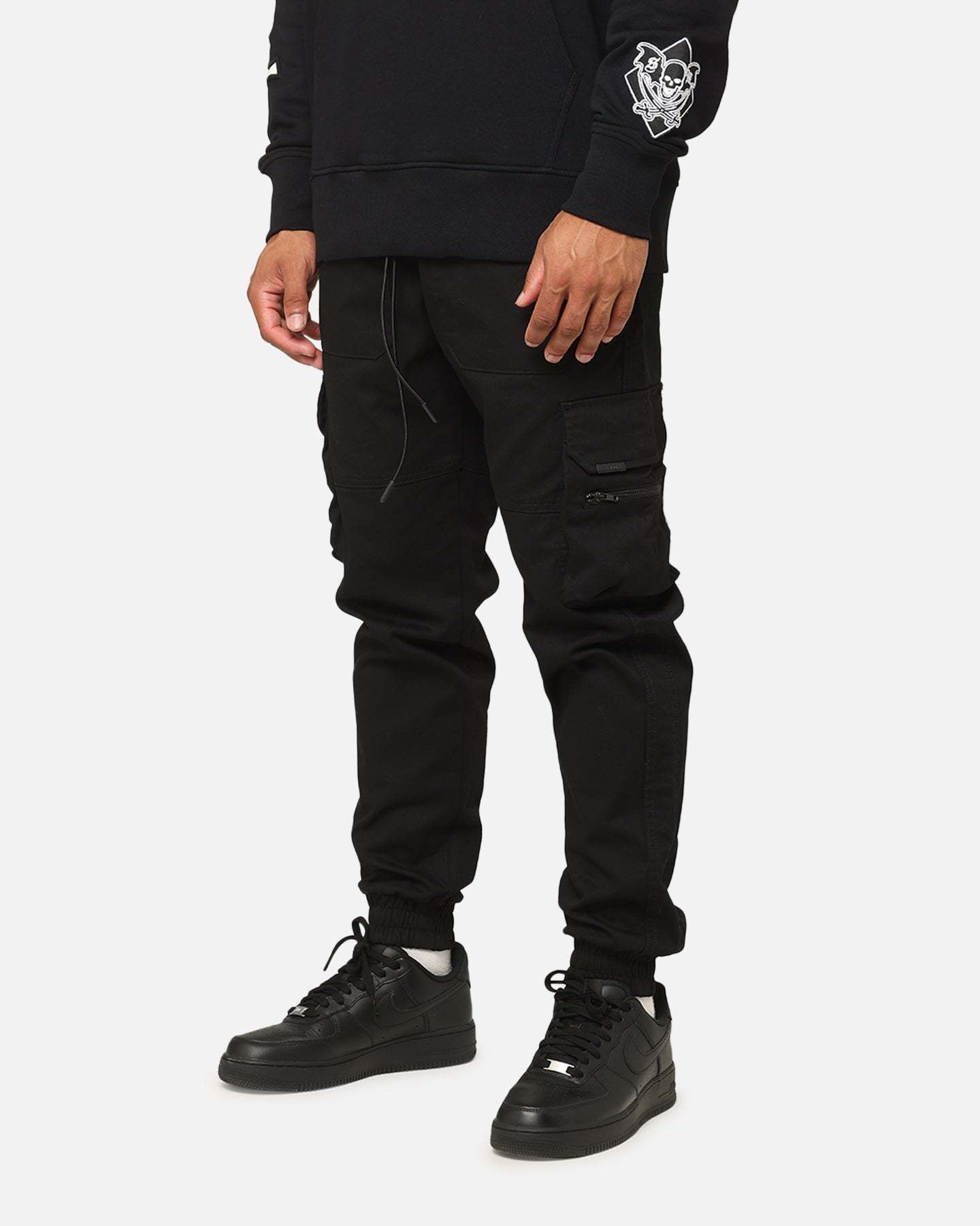Bringing the heat this season, Saint Morta is coming in hard with fresh looks to level up your 'fits. Taking a staple to the next level, the Payload Tactical Jogger is decked out in cargo pockets with an elasticated waistband and ribbed cuffs for that classic style. Thick, premium cotton makes sure these are long-lasting in your wardrobe. Cop it today.- Elasticated waistband- Adjustable drawstring- Cargo pockets- Tapered fit- Elasticated cuffs- Dual side pockets- Dual rear pockets- Tapered- Material: 100% Cotton- Colour: Black- Style: SMPAYLOADTACJG
